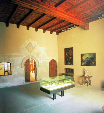 - Si accedemos al interior del Palacio,veremos que hoy está ocupado por el Museo de Poblet.Entramos por la puerta principal a una gran sala (Sala V de la Corte).